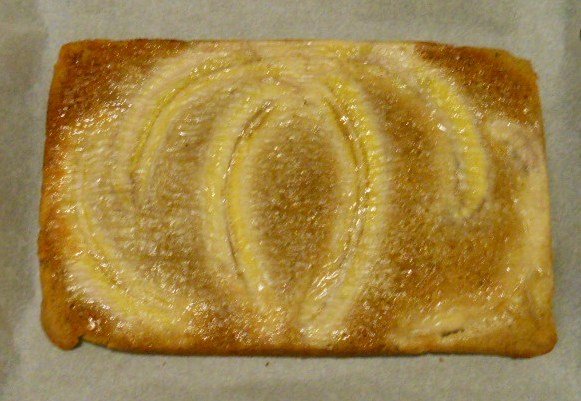 Piszkénél láttam ezt a receptet, gyorsan el is készítettem. Sajnos, az enyém nem lett olyan látványos, a banán „beleolvadt” a környezetébe, valószínűleg éretlenebb banánból kellett volna csinálnom.
