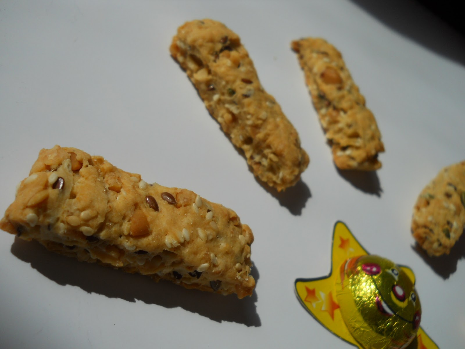 Kellett valami sós rágcsa, kerestem sajt nélküli receptet, mert sajtot elfelejtettem venni. A sok magtól nagyon jó ropogós lesz. Én a megadott mennyiségeket harmadoltam, így is épphogy befért egy gáztepsibe.